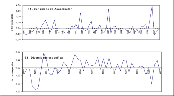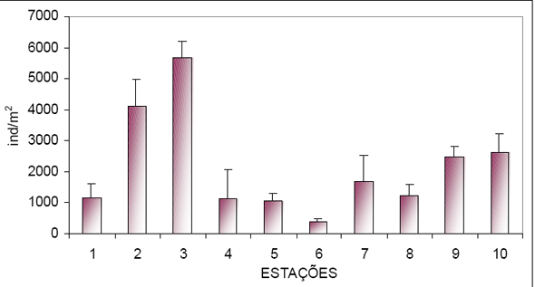 Roiff (1996) trabalhou em uma escala espacial maior, abrangendo 8 diferentes áreas da região sudeste (de São Sebastião até Vitória incluindo Angra dos Reis). Embora tenha verificado uma redução da biomassa total em direção ao Norte, conclui-se que a abundância e composição específica em cada estação de coleta deveu-se mais aos fatores locais como poluição orgânica, turbidez e pluviosidade do que a efeitos latitudinais de temperatura.